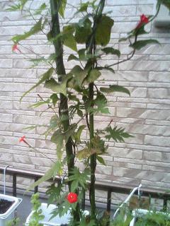 あしたからの土日にくわえ月曜日に休みをつけて3連休。月曜日みんなで視察行くんだって。何か仲間はずれにされたみたい。でも、私は休みのほうがいいのです。なんてったってゆっくり寝れるからでございます。昨日も、急激な暑さですっかり参ってしまい練習サボって帰ってしまいました。ビールで体を冷やしてたら、すっかりやる気喪失。そのまま寝てしまいました。今朝見るとルコウソウは更にあちこちに花をつけていました。一般的でない開花風景ですがこれも一興。 こいつは明日採ります。本当はもっと葉っぱがあるはずなんですかばったやらナンやらにいろいろ食べられてます。