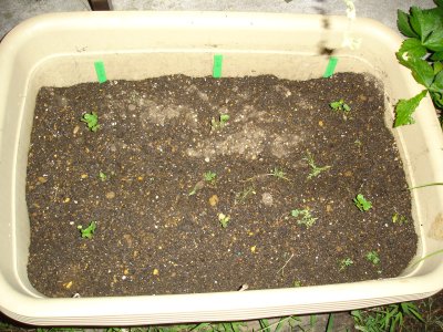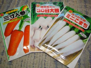 この時期まけるものをと種を購入しましたが、土も篩ってあってもまく場所がない。本日、残りだね他2種無理やりまきました。ほうれん草&ベビーキャロットです。出来ればよいな。コールラビよ早く育っておくれ。そうすれば土をふるいつつ、マリーゴールドを混ぜ込んで、いざ三浦大根。普通の大根は、落花生後ですね。ビオラはこの時期にタネまきとのことでしたが、まだ残ってるし。どうすんべかな?ルコウソウは一日で赤い花を落とします。でも、まだしばらくは一杯咲きそうです。出来てれば40,000アクセスのお礼は種の輪で。無理なのかな?50,000にしとくか。先週植えたたまねぎ芽が伸びてきました。一昨日収穫したのに次がもう出来てきてます。本日のおもては以上でございます。