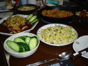 実を言うと昨日の晩御飯です。今日は今現在奥さん調理中。私はといえばCD聞きながらベーコン燻してます。レシピは求めないように。超いい加減原型もとどめていません。大本はダッチさんです。現在燻し中にて煙くなってきました。鳥さんではなく、塩抜き中ベーコンの味を見るためにも、豚ばら肉にて。まだ塩辛かった。あとは、賞味期限まじか野菜類。ホールトマトがなく、自家製トマト、足りない分はいろいろ。 スープになってしまいましたが、コールラビの煮物。メインおかずは鳥のから揚げ中華風でございました。ちっとタレ多すぎ? 本日については、飲みすぎなければ後ほど。現在、本日300円。わかる人にはわかる金額でした。