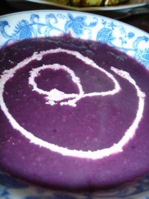 食欲をそそらない不思議な食べ物です。一昨日書いたか記憶にないのですが、もらったサツマイモは普通の芋ではなく紫芋でした。しかし、奥さん強し。お買い物から帰ってきて、私はこれをどうすべきか悩んでいたのですが、当然そのつもりだったとのたもわれて、しゃあなくいわれるがままに作りました。どうです?トッピングしても不思議?あとは、手抜きというか普通に。お昼が、前の晩に実家に焼きそばをもらってしまったのでお好みだったもので、晩は焼きそば抜きでたこ加えて、たこ焼き。 なぜか、豆腐も一杯あるので豆腐明太炒めにニラ入りでございました。しかし、二日間繊維質は多く取ったはずなのに、お通じは今ひとつ?単なる飲みすぎ?そういえば、昨夜角煮作ってたんだ。