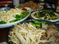 昨夜から作っていたこんにゃくをメインにすえつつ、なんかどことなく健康的ご飯でした。こんにゃくステーキなんです。シシトウも本日猫庭収穫。ピクルスもとりあえず自家製、ドレッシングかけサラダ。間引き菜は炒め物に。 おいしうございました。何本飲んだかまったくわからず。本日は以上。おやすみなさい。なんかデザート出てきてしまいました。作った以上しゃあない。KURUMIさんレシピ杏仁です。おやすみなさい。