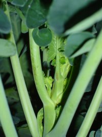 カリフラワー状になってくれ始めました。葉っぱの間に、かすかに白いの見えますか?今年、初挑戦なので喜びも大です。先日発芽菜っ葉苗も無事に育っているようです。まだ移植先は定まっていません。いつもペースに戻って、本日のおまけ驚きは。ニャンだこいつは?余り苗ワンダーランドのナスタチウムに花芽が。本日は以上にて。おやすみなさい。