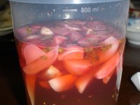 昨日つけましたはつか大根ピクルス。面白い。白も赤もピンク色になりました。ちっと失敗は、塩もみ忘れた。ちっと水っぽい。本当に、おわり。おやすみなさい。