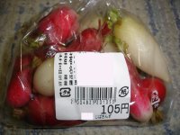 本日農協にて買って来た、はつか大根浅漬けに。 下ごしらえというか、洗って切ってつけるだけ。形が悪くてもなにしても、こういうのが安く流通してくれると、お百姓さんは助かるんだろうな。結果は明日以降。