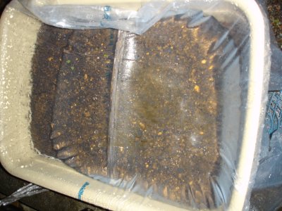 保温のためにトンネルシートを切って掛けているのですが、見事な水溜りです。まあ、雪でも一緒ですけど。