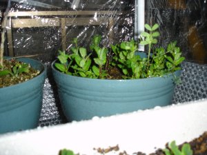 おまけの温室アップルミント。外に比べて勝手になんか伸びてます。