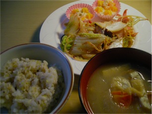 2013/02/27疲れていて休みにしたかったがPC気になって仕事場へ。昼食、仕事場でいなばのタイカレー缶とコンビニのサラダ、からあげくん。家内も昼休みに来てくれて不調の仕事場のPCをいろいろ試す結局だめだった。まったく電源入らず。これは絶望的だ。まあ、自宅のpcが生きているのが救いだがその自宅の方はネット環境が何だか不安定で、いやな感じだこれはもう修理の業者さんにお願いするしかないかなマシンはだめでも、データは欲しいどうにもならないので早々にあきらめて徒歩で帰宅、暖かい。毎日こうだったらいいのに。夕食は珍しくおれが担当。家内は隣組の会合あったので、おれが作ってみた。夕方から作っていたカレーライス(豚もも肉、しめじ、キャベツなど)煮浸し味噌汁。デザートにいちごといよかん少し。