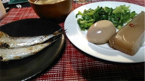イワシ丸干し、味噌汁。以上。ごはん食べない