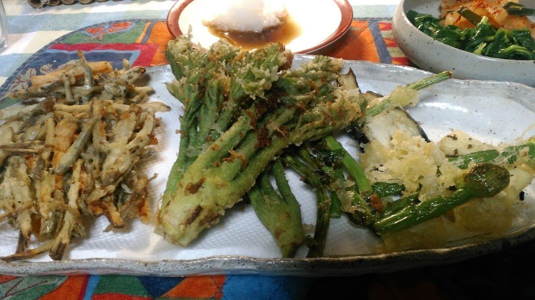 頂き物の たらの芽など。天ぷら。うまい!