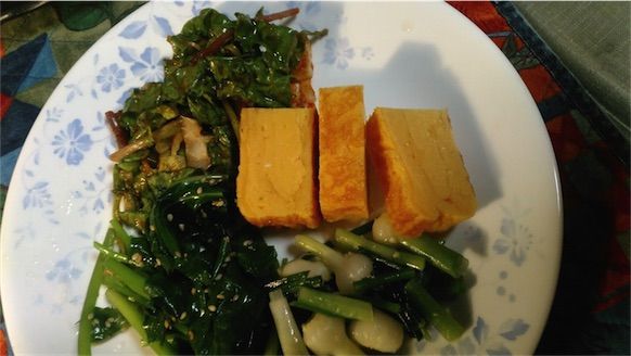 昼食は実家。持参した弁当とコンビニの千切りキャベツ(袋にどさっと入ってるやつ)。