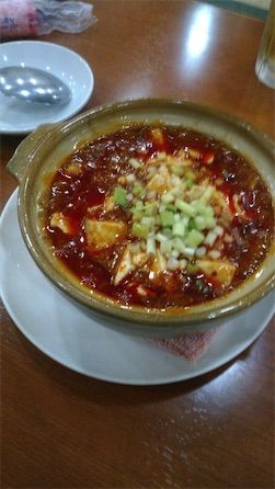 辛い麻婆豆腐。おれはこのくらい辛いのが好み。