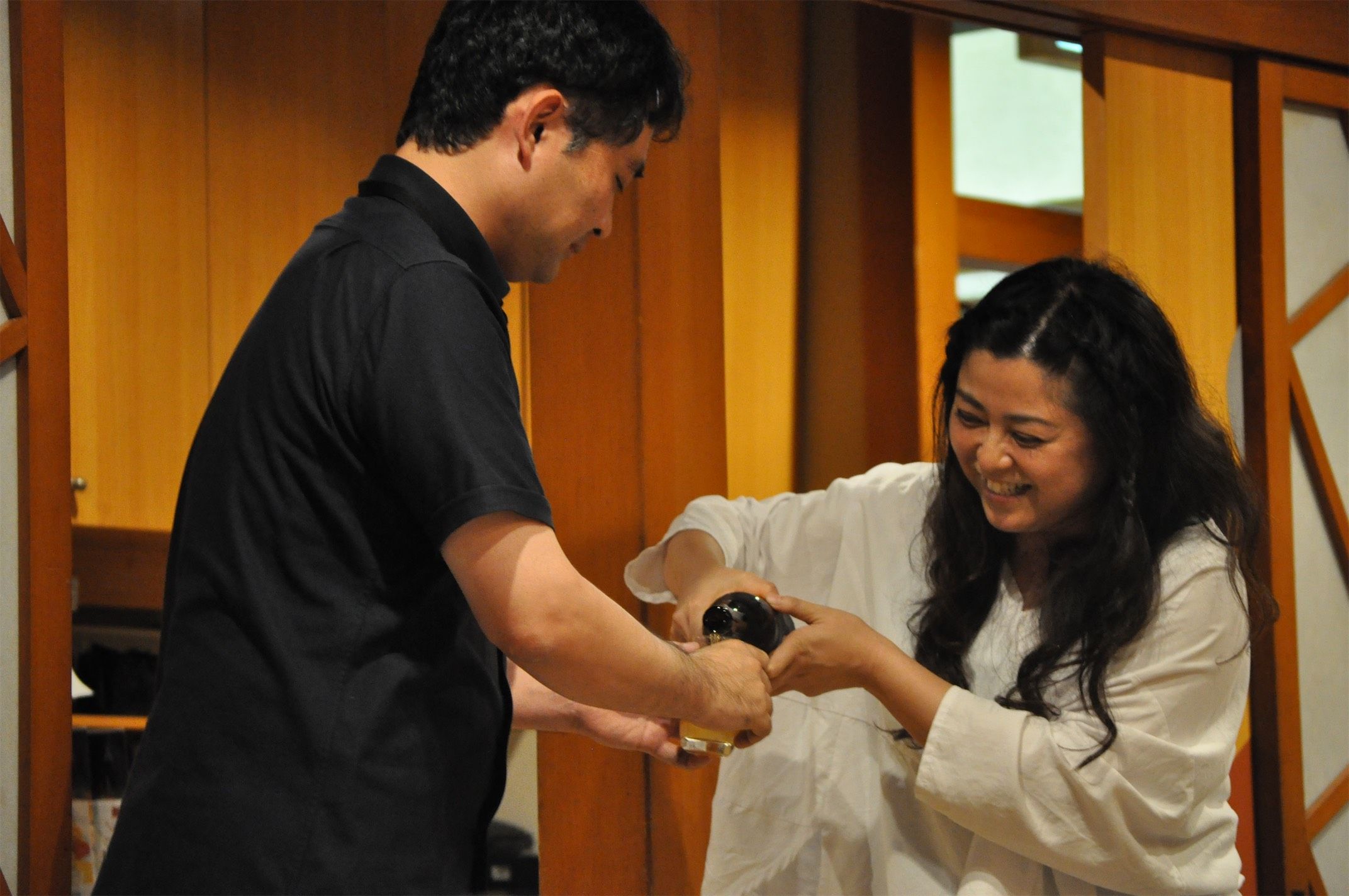 女子たちのイッキの身代わりを次々と引き受けてゆく頼もしい代表幹事