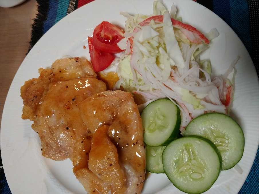 昼、オートミール炒飯と昨夜の油揚げ肉詰め(油揚げハンバーグ)残り
