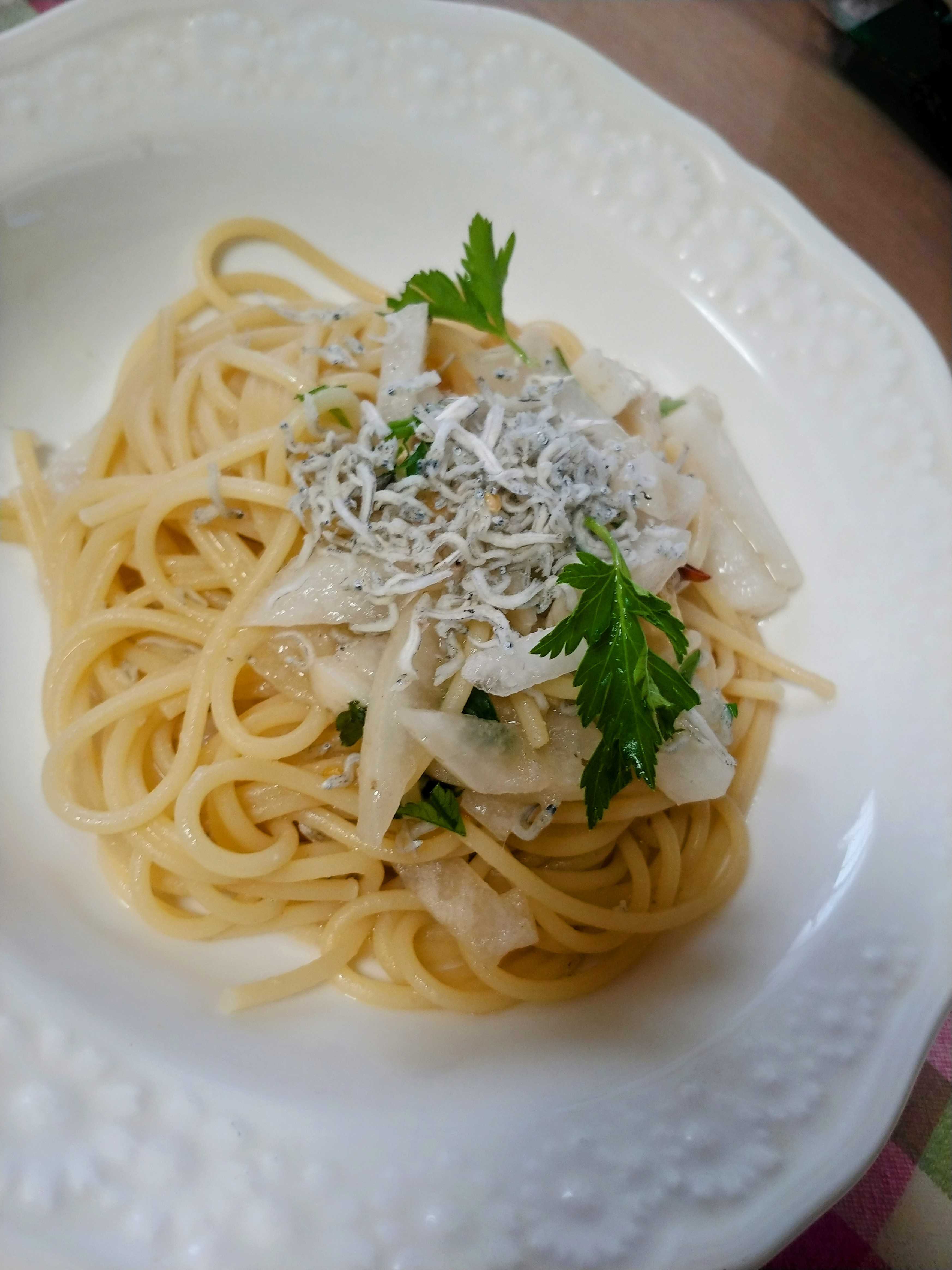 しらすスパゲティ作って食う。