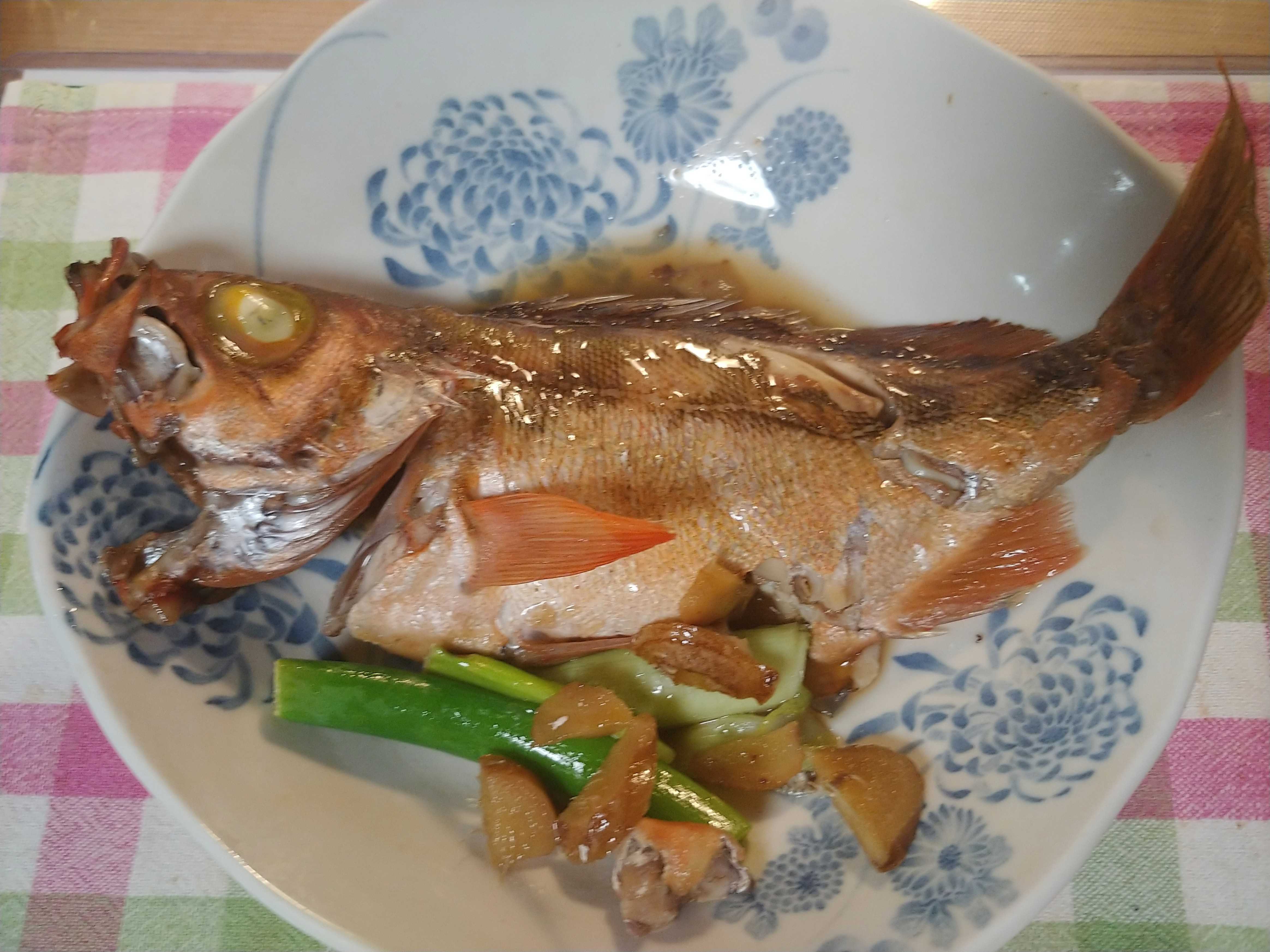 野菜パスタ。鮭茶漬けの元をトッピングして。パスタは最近は多くて80gで落ち着いてきた。100だと多く感じることもある。