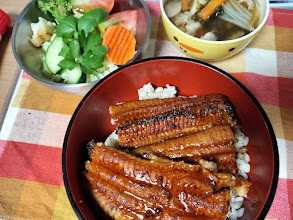 浜松駅メイワン地下で買った鰻蒲焼で鰻丼。うめー