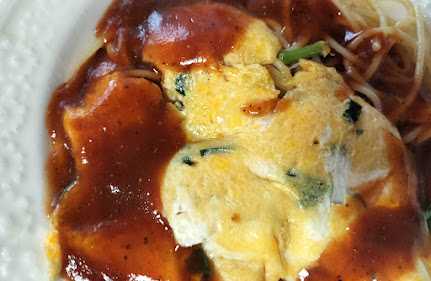昼、ニラ玉スパ。あんかけスパ風