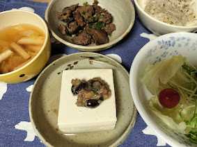 夕メシ、レバーとハツのしぐれ煮 温豆腐​