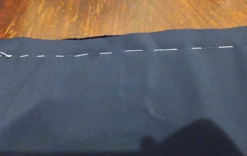 さて、パンツのベルト部分を付けます。ベルト部分に印付け縫いをします。そして、縫い付けました!