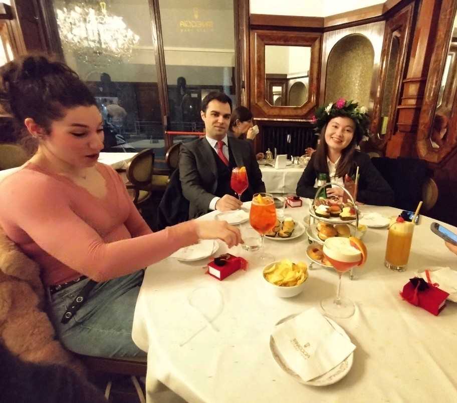娘の大学の卒業セレモニーも一貫して終わり、続いて、イタリアで言うBar(喫茶店のようなもの)へ、移動します。前にも投稿しましたが、とにかく卒業式後の予約場所に大変苦労したんです!日本でも最近メジャーになってきたアペルティーボ。このお店にて、何年か前にママ友とアペルティーボをしたことがあり、ちょっと高めでしたが、ちょっと豪華めなところがあり、大學の卒業式後には、ちょうど良かったと思います。カクテルを頼むと、このような軽食スナックが付いてくるアペルティーボ。フルーツがベースのかくてるもあります。前に友人と行った時よりかは、ちょっとゴージャス感はなくなっていましたが、まー、良かったと思います。↑老舗感が漂う照明残念なことは、火曜日の平日の卒業式となってしまったので、ローマで就職した高校時代の親友、もう就職してしまった中学校時代の親友、大學の後輩はテスト前の追い込み勉強、先輩は、仕事中にて、来れない友人が多かったことです。来る人数が減った分、料金を払わずに済んだのですが、この際、もう少し大人数で祝いたかったです。親戚が多い家または、親戚が地方から泊りで来てしまう場合や、卒業式が朝だったりすると、アぺの後お昼に流れ込んだりしますが、レストランに行かないといけない羽目になったりするのですが、ここは、ミラネーゼぽく、スマートにアぺだけで、追われました。この喫茶店のケーキも美味しそうです。私は、お会計をすまし、私の友人と早めに喫茶店を後に、しました。私的には、上等だったと思ます。Taveggia Milano 1909Via Visconti di Modrone,220122 Milamo