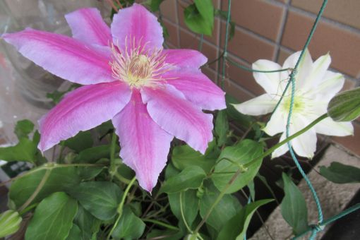 こんにちは。午前中に雨が降り、洗濯物をベランダに干そうかどうしよう、天気予報ではすぐ止むような事を言っていたのでベランダに干しました、天気予報当たりすぐ止みました。今日は昨日のうちにまとめておいた木材(今までいろんな家具を作ってきた端切れ)をゴミに出しました、新しくなったキッチンでもぷーさんが作ってくれたパントリー、食器棚がとても役立ってくれています。そうそう、この間HCに行ったときに買った花を紹介します。一鉢にピンクと白のクレマチスが入っていました、花が大きくてとても綺麗です。植え替えはぷーさんがしてくれました、私はサニーレタスとレタスミックスの種蒔きをしました、「発芽したかな?まだ発芽していない」毎日眺めています。インゲンのタネを買うのを忘れました、近いうちにまたHCに行ってきます、ぷーさんが毎日サンデーなので助かります。