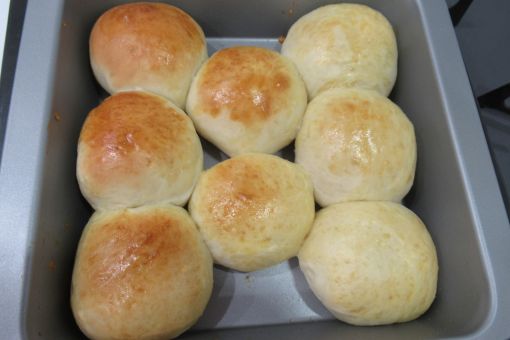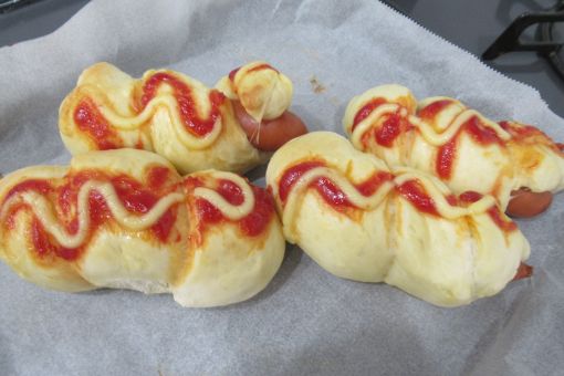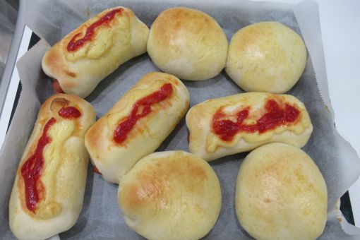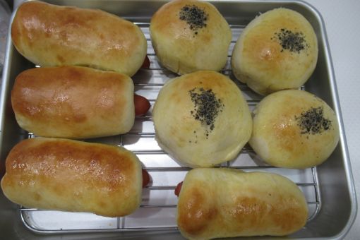 こんにちは。今日は支払いと銀行と周ってきました、もうお給料は無いけど月末の給料日だったので、それをそのまま年金暮らし突入です。帰宅してテレビみていた、暇なのでパンを焼くことに、ぷーさんに一言「30年ぶりの手捏ねパン焼きだから失敗するかもよ、期待しないようにね」探したら昔パンを焼いていた頃の本が出てきました、YouTubeには「捏ねない、発酵無し」などあるけど、失敗した人が「やっぱり捏ねる、しっかり捏ねる」成功はそれが一番、「発酵もしっかりする」と言っていました、膨らみが全然違う。古い本にも「捏ねる、発酵」の部分に私が赤いボールペンで線を引いていました。とりあえず8個分のパンを焼く材料をちゃんと計って、蓋つきのボウルに入れてしっかり捏ねた、最初手にベタベタついて、やっと昔の感覚が戻ってきた(思い出した、そうだった、ここからしっかり押して捏ねて、そしたら手も綺麗になってパンもひとまとまりになる)生地を張らしながら捏ねる、しっかり10分捏ねた、生地が滑らかになりドライイーストの香りが(良い香り)生地を平らにして8等分にカット、丸めて濡れ布巾を掛け15分発酵、二倍に膨らんだ生地のガス抜き生地を張らせながら今度は丁寧に丸めて30分発酵。待っている時間にどんなパンにしようかな、お昼ご飯に焼き立てを食べられたらいいなあ、ウィンナーにパンを巻き付けよう。ここで1つ失敗、ウィンナーを冷蔵庫から出しておけば良かった、折角膨らんだ生地が冷たいウィンナーでどうなのでも仕方ないそのまま巻き付けた。ぷーさんとお昼に2個ずつ戴きました、30年以上ぶりに手捏ねパン焼き、美味しくできました、強力粉、バター、ドライイーストがたくさんあるから暫くはパン焼き楽しみます。
