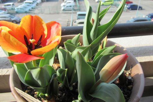 おはようございます。今日も爽やかなお天気なのですが花粉、黄砂でなんとなく霞んでいるような気がします。今日は破砕ゴミ出しの日、今年の冬に炬燵布団を新しくしたので古い炬燵布団を小さく丸めて紐で縛って置いていました、押し入れの中の要らない布団も1枚、リビングの電気(昔に流行ったシャンデリア風の物)が2つぶら下がっていて、1つに4つのチューリップの形のガラス素材、合計8個をほこりを拭いて1個ずつ新聞紙で包んで指定のゴミ袋に入れて、もう無いと思っていた要らない食器がまた出てきたのでそれも新聞紙で1つずつ包んで全部出しました。電球8個は資源ごみの日に出します、リビングの電気はシンプルなぺったんこの物に、台所が明るくなったのでリビングが凄く暗く感じて30年ぶりに変更となりました。今まで家のメンテナンスを殆どしていなかったのでこれからはぷーさんが毎日いるので襖の張替えや押し入れの中の整理や2つある物置の中も片付けたい、やる事一杯です。急に夏日の様な暖かさになってチューリップが咲き始めました。最後の画像、フリージアの蕾が膨らんできました、咲くのが楽しみです、一昨年は畑仕舞いでバタバタしていて球根を植えるのを忘れました。4月になったら色とりどりの花が咲き乱れるのが楽しみです。