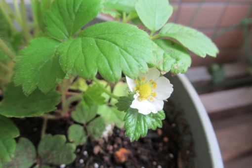 こんにちは。今日はポカポカ暖かくなりました用事があって二人でお出かけ、桜がまだ残っていました、今年は長く桜が楽しめますね。用事が終わって帰り道、二人共吸い寄せられるようにHCへカラフルな花に誘われて、あれもこれも可愛いまず欲しいのはイチゴ苗大きいイチゴ苗を見つけてかごの中に入れました、暫く花を見て回って幾つか買いました、そしてかごの中のイチゴ苗のプレート写真を見たら白イチゴでした、苗は凄く立派で花芽もたくさんついていましたが、やっぱりイチゴは赤いのがいいなあ~~。もう一度イチゴ苗の売り場まで戻って、白イチゴ苗を戻して、ゆっくり眺めていたら、可愛いイチゴ苗見つけました。「ローズベリー・レッド」花も実も楽しめる!赤い花のイチゴです、以前も栽培したことありますが同じ品種ではありません。こちらのイチゴは白い花です、植え替えはぷーさんにおまかせ、土は再生して使っています、ぷーさんがいろいろ混ぜて大きいプラスチックの箱の中で作ってくれています。アブラムシが付かないように防虫ネットを掛けた方が良いかな?