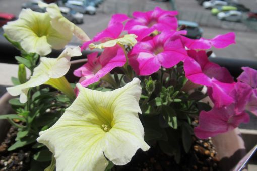 こんにちは。6月のジメジメした梅雨のイメージは全くなくて風が爽やかで気持ちが良いです。3週間ぶりにやっと花を買いに行くことができました、欲しい花はポーチュラカ、マツバボタン、そろそろお店に並ぶ頃、ありました。マツバボタンです、いろんな色の花がミックスしているのを2ポット買って1鉢に植えました、まだ少ししか咲いていないのでこれからたくさんの花が咲くのが楽しみです。ポーチュラカは黄色、ピンク、白色、赤と4色を1鉢に植えました、まだ咲いていないので咲いたら写真を撮ります。久しぶりに朝顔を買いました、ベランダにネットを張ってもらっているので何か蔓系の花が欲しくなりました。その他にハイビスカス、ニチニチソウも買いました、ベランダが賑やかになってきました。
