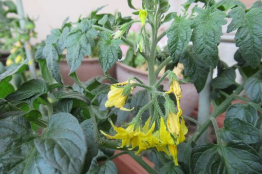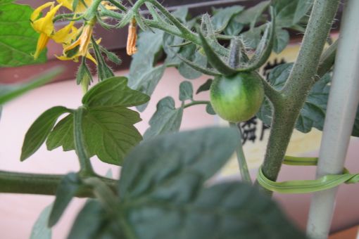 おはようございます。お天気も良く昨日と打って変わって爽やかです、昨日は風が強かったけど今日は風も無く静かです。この画像は火曜日に撮った物です、トマトに花芽が見えてきました、嬉しくてパチリ今朝水やりしていたら1つ花が咲いていましたトマトの形になってきたらもっと感動しますね。