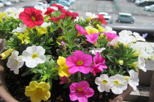 こんにちは。今日は一日曇り空でした暖かいから家の中では半袖です、夜から雨が降るようです、明日の朝まで雨が続くようです。畑をしていた12年間はパンを焼くことを忘れていました、ホームベーカリーがあります、相当古いです、ホームベーカリーを買う前は手ごねでパンを作っていました。年のせいか根気がありませんホームベーカリーでパンを焼こうか、材料買って来なくちゃなあ。。。。パンを買った方が早いなあ。。。こんな事考えていたら前に進む事ができないままです。この花の名前を忘れました、優しい感じの花です。昨年も栽培していたカリブラコア、1鉢に5色の色の花が入っています、もう1鉢植えています。先週種蒔きしたレタスミックスとサニーレタスがたくさん発芽してきました、植え替えずにそのまま栽培します、防虫ネットを掛けています。