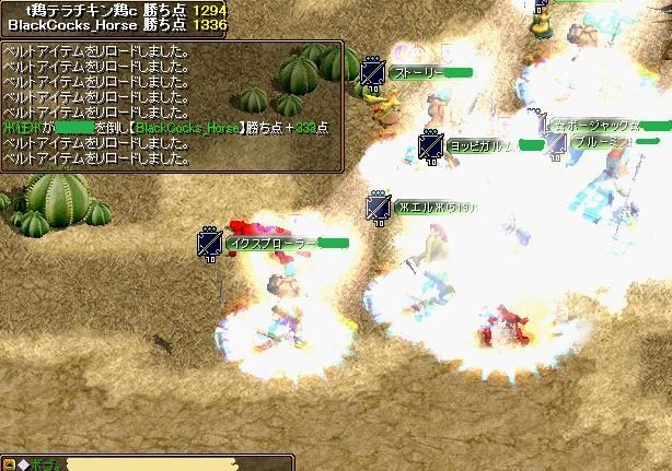BlackCocks_Horse VS 甲斐連合今年初Gv。再戦でした、黒馬の参加5名、火力300台1名とかなり厳しい状況一人ながらも総得点2000点を稼ぐ活躍^^相手さんは1PT半くらいで人数的に厳しかったですね(´・ω・`)結果は負けでした、2戦1勝1敗またよろしくお願いしますm(__)mBlackCocks_Horse VS 最強の村平均Lvに差がありました・・・人数は多かったと思われます。結果は勝ちでした、またよろしくお願いします^^BlackCocks_Horse VS 【鬼ガッシ連】再戦でした、人数がすくなかったと思います。結果は殲滅勝ちでした、2戦2勝0敗またよろしくお願いします^^BlackCocks_Horse VS Zero・Edgeforce相手さん参加3名ほどだったと思われます。平均、人数に差がありました、結果は殲滅勝ちでした、またよろしくお願いします^^BlackCocks_Horse VS ♪のくたーん♪詳細忘れました(人´∀`*)結果は勝ちでした、またよろしくお願いします^^BlackCocks_Horse VS †武神†BIS、WIZさんが相手さん多かったです、結果は殲滅勝ちでした、またよろしくお願いします^^BlackCocks_Horse VS ☆点火星☆かなり同等の相手さんでした^^人数がとても多く、WIZさんも多かったと思います。ラスト1分の攻撃がきつかったです。ぎりぎりでした><;;結果は勝ちでした、またよろしくお願いします^^BlackCocks_Horse VS †明日への扉†とにかく人数が多く、黒馬の3倍は居たかと思います、WIZこちら1名(人´∀`*)ステ振りして初Gv死しますた(´・д・`)中盤まではぎりぎりの黒馬がリード終盤はネクロさん、天使さんが多く、烈火、MDがきつかったです><;BIS2名とも死んでしまい、PTが崩壊><;;1WIZでは烈火対策ができないのが問題でした・・・透明、テレポで射程外に逃げ、瞬時に味方の後ろに隠れる、これくらいでしょうかね?><;;PSのあるネクロさんがいるとどうしても、透明でも普通にタゲ合わせてきますし射程外逃げてもはずせれない方もいますし・・・と><;;2人WIZいたらもう少しねばれたかと思われました。結果は負けでした><;2戦0勝2敗またよろしくお願いしますm(__)m