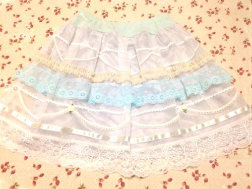 このティーローズスカート、パープルと赤も色違いで持っていて、