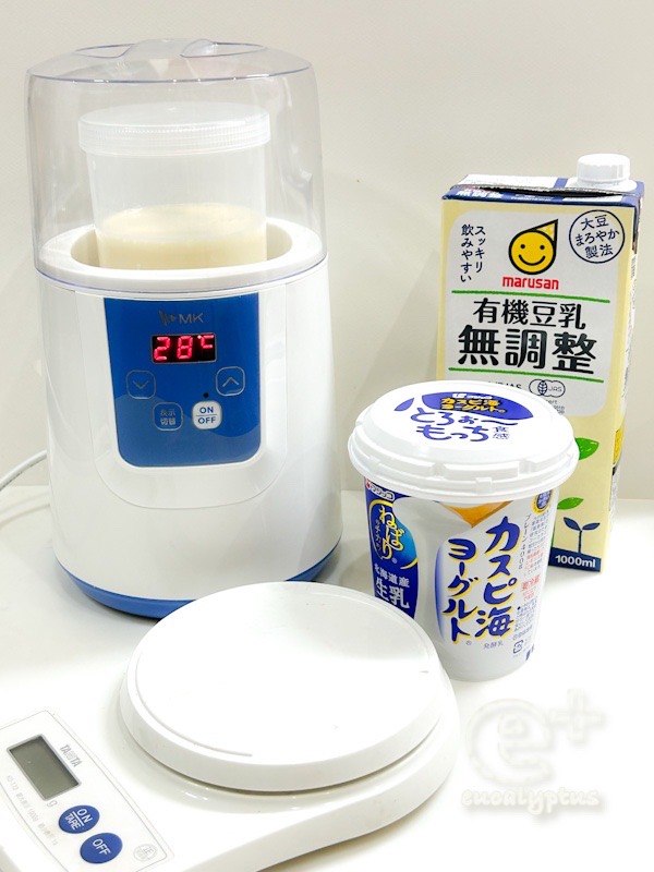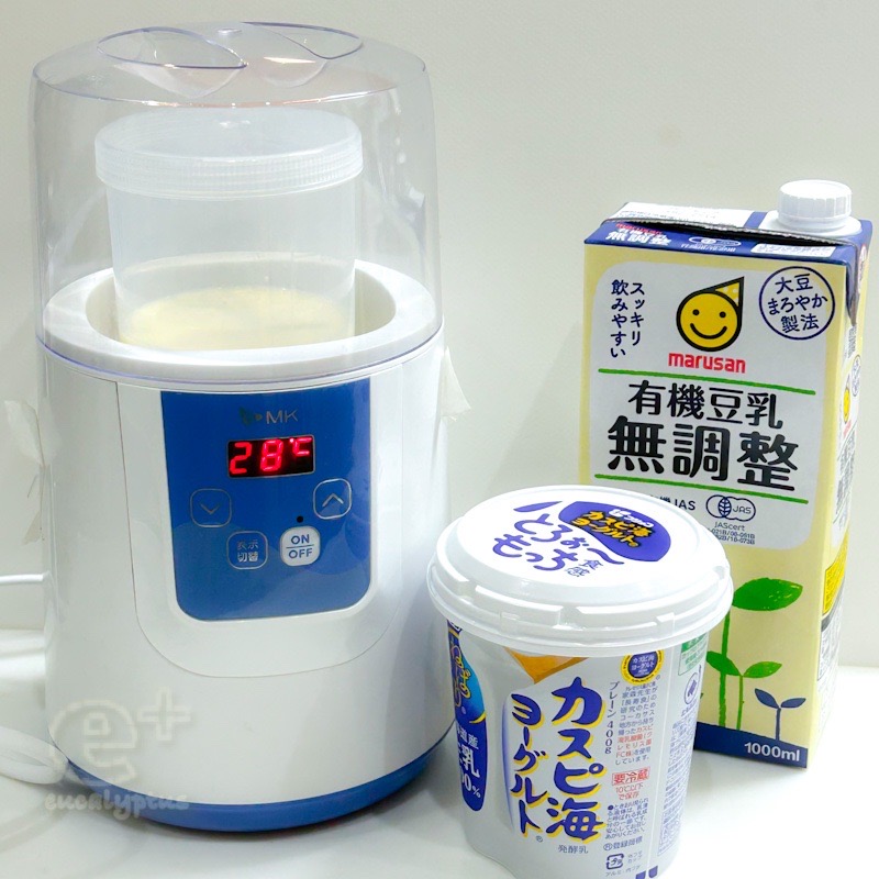 材料・カスピ海ヨーグルト(種菌として)80g・豆乳700gヨーグルト・甘酒メーカー(YA-200W)で・28度 12時間 に設定・23:00スタート・翌朝9:00もうしっかり固まっていたので終了(10時間)(冷蔵庫で1日冷やしてからの状態)