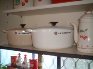 先日、市内の某所で「フランス展」なるものが開催されていて朝っぱらから近所の友人がお誘いの電話をかけてきた・・・・・・(^_^;)友:「(広告のチラシ)見た~~っ!?鍋が安いよ、見にいこうっ!」私:「えーっ(↓テンション下がる)買ったばっかりだし。。」友「いいやん、見るだけでもぉ~」・・ってそんなわけないやん~!実は前々日に、高くて手が出なかった憧れのお鍋「ル・クルーゼ ココット22センチ」をセールで買ったばかり・・・・「・・・じゃ、見るだけ見てみようか・・・」とふたりで車ブイブイ飛ばして行きました。会場のコーナーでは個数限定、在庫限りの半額セールル・クルーゼのお鍋・・・半額セールなるものにこれからなかなかお目にかかれそうにない~~どーしよう。。。って迷ってるうちにほかの人に買われそう~~~ってな訳で・・・ついに我が家に、もひとつお鍋が増えちゃったのですぅ~~~~~オーバルのホワイト~!♪これで古いお鍋を思い切って処分できそうです。友人はケトルを購入♪さらにほかの友達の頼まれた分まで買ってしまったので帰りの荷物がものすごーく重くて二人でヒーヒーいいながら運びなんとか駐車場までたどり着きました帰ってから、早速「牛筋とこんにゃくの煮込み」をしてみましたがすぐ煮えて味もしみこんでいて、とっても美味しかったですよ~~~^-^普通の鍋よりも調理時間が短いのがいいですね~!!たかがそれだけのことなんだけど、なんだかハッピーで♪(単純~(^^ゞ)重いお鍋を出したり入れたりしながら、その日の献立あれこれ考えてます~~~!!!