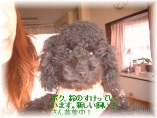 今日も朝からいい天気早朝、次女が関西方面に修学旅行!出かけました。長女の時は往復がフェリーだったので夕方出発、翌朝神戸港着でした。今回は行きだけJRの旅。ソニックに乗り小倉駅から新幹線で大阪へ海遊館や奈良京都そしてUSJで半日遊ぶコース私たちの時とは違って遊べるところもあるんですよ~~~ちなみにワタシの頃は(いつの話???笑)長崎、平戸方面でした。その頃は関西や東京に行ってみたいと思ってましたが~~~(笑)11月1日でブログ初めて1年経ちました。早いなぁ~~~1年って・・そう思います。ここでたくさんのブログお友達ができてウレシイです!!趣味にしてもそう、ワンコにしてもそう。。みなさんのお話を読んで楽しませてもらったり、考えさせられたり。。感謝に耐えません。ボチボチですがマイペースで書いていこうと思いますのでこれからもよろしくお願いいたします~~~以前の日記にご近所の黒プーちゃんをご紹介しました。お名前は「鈴のすけくんとリンちゃん」飼い主さんが急に来年沖縄にお引越しすることになり鈴のすけくんだけ手放すことになりました。只今新しい飼い主さんを募集しています。人懐っこい男の子なんですよ~~~~^-^