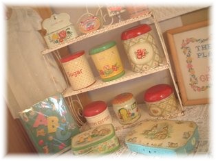 お友達のベリーシナモンさんのブログに可愛いスパイス缶が紹介されていましたが私もアンティークの缶が大好きで集めています。いろんなデザイン、絵柄があってその色もとってもキュート!!!!ホーローも好きなのですが、やっぱり私は缶がイチバンなんです~^-^お菓子の缶、ベビーパウダー、シュガー缶、マッチ入れてた缶。。。中身はさまざまです。イチバンのお気に入りはウサギのキャンデイ缶です。どちらもイギリスのもので、右は鍵がついてたみたいです。キッチンものは錆びちゃう&油汚れをふき取るときの色落ち・・・これに要注意なんですけどね。。。(T_T)