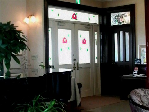 先日ご紹介した『カフェ☆りあん』の入り口はとても素敵なステンドグラスの扉なんです。中から写してみました。うっとりしてしまいますランチのスイーツにもうっとり夢ごこち