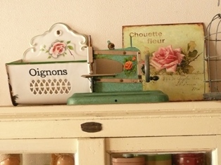 薔薇のアンティークが好きです。医療棚の上の薔薇の雑貨たち。お気に入りは薔薇の絵柄がついたトイミシン♪なんともいえない可愛らしさがありますね。もうひとつのトイミシンは春色ミシン!花シールがキュート!