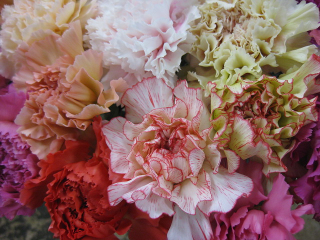 このガーベラ、ものすごーく大輪でした。びっくりするくらい大きいの。欲しかったー。。。ストックの この色が好き。カーネーションコーナーではワタクシもうコーフン気味でした。物欲の最終形は、「食べたい」という表現になる私。。。はぁ~・・・ため息しか出ない・・・。
