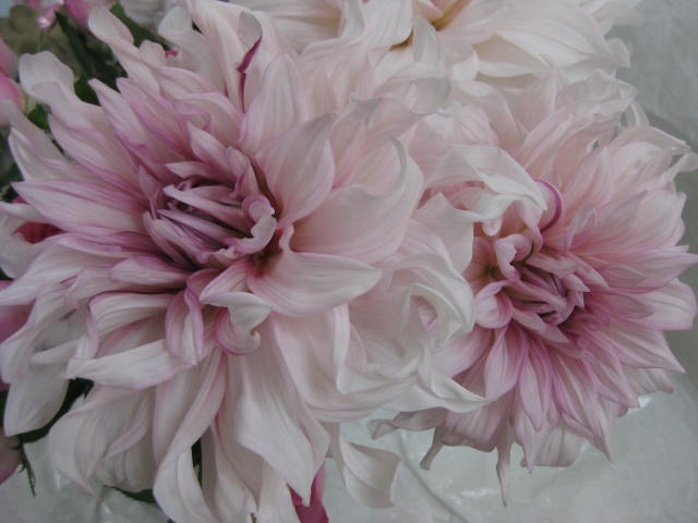 あち・・・今日もヒマぶっこいちゃってるのらねこ087です。やばいわー日曜なのにーこんなことならお休みにして幕張で行われてるフワラードリーム2010でも行けばよかったかも。実はなにわ花市場の方に誘われていたんです。でもまさかこんなにお店がヒマになるとは思わず お断りしちゃったんです。こんなことならこんなことなら と思っても後の祭り。お店ってのは、開けてみなけりゃ暇なのか忙しいのかわからないもんだすな。ペットのお悔やみのお花のご注文が1件入ったのですっごい手間隙かけて心こめておつくりしちゃいます。時間はいくらでもある。。。。純白のダリア「マルコムズホワイト」超巨大。これを使いましょう。
