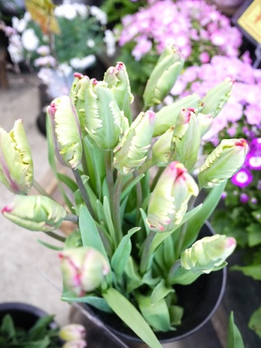 やっと入荷のフレミングパーロット。赤と黄色のド派手は咲き方をするチューリップだぜよ。 フレミングコケット。こちらはパステルでかわいいのぉ。 セクシーレディ。パーロット咲きだけど、今のところどこがセクシーかは不明。パーロット咲きはぐんぐん成長しながら姿を変えていくから、楽しみなチューリップ。 ここんとこカンパニュラがずっと入荷している。頼まなくてもなぜか台車に載っているので黙ってもらってくる。まぁかわいいからヨシとする。 アタクシも最近 頑張っているのだ実は。販路拡大すべく、今日は初めて営業というものをしてみた。まーアレよね、営業ってダメ元みたいな感じだから、ダメでもさほどダメージはなく。ダメじゃないとチョー嬉しいから むしろ「ラッキー!」って感じ。お試しだけど、週末から一軒販路拡大ゲットなり。あくまでもお試しだけど。 私もうかうかしてないで たまにはがんばろ、って思うわけ。うかうかしてる間にもう1月も終盤。このままだとうかうかした一年が過ぎ去ってしまう。 それにしても今日は寒い。空気が冷たい。 ジーナちゃんの避妊手術の予約を入れてきた。発情中は手術しないほうがいいからって来週の予約になったのだけど ジーナの夜中の大騒ぎ、、、近所から苦情がこないといいけど。 ジーナ、本日の体重2.7キロ。多分あっという間に月子に抜かされそう。パッと見、月子とジーナの大きさは変わらないくらいになったもの。月子、ありゃ大きくなるね。長毛が入ってるから、洋ネコの血が入ってて大柄だと思う。ジーナは小柄かなぁ。やっぱり足がうまく動かなくて、時々キャットタワーから落っこちるからドキっとする。それでもキャットタワーには登るのね。根性あるね。 私もがんばろう。落ちても落ちてもまた登るのだー、うりゃー。