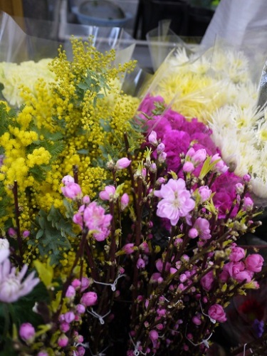 大好きなチューリップ「ブルーダイヤモンド」。 かわいい「コマチ」。 お雛様のアレンジメント。あ、昨日急遽、お雛様アレンジの花教室開催しました。隣のパチンコ屋さんでパチンコ打ってるお客さん探しに行って、「午後からやるけど来るー!?」って耳元で大声で叫んで。「今日やりたい」って方がいて、ひとりじゃ開催しないから、誰か相方探さなきゃ、とパチンコ屋まで探しに行く親切な私。「えー!?・・・わかったーやるー!!」とパチンコの画面見ながら答えるお客さん。パチンコ屋さんてアレよね、音がうるさくて何にも会話ができないわ。その方がついでにもうひとり参加するわ、ってことで、しめて花教室で9000円の売上げなり。パチンコ屋さんまで探しに行った甲斐があった、って話。 プリザも頑張ってもっと作らなくちゃ。忙しくなる前に。 桃の花がよく売れてます。雪の影響でガタガタだった店売りも、やっと正常モードに戻ってきた感じ。 でもまだクロネコヤマトさんは正常ではないみたい。もう道路も普通に走れるのに、「明日着は無理」とか「時間指定できない」とか、都内への配送でも言われてしまう。青梅市でも、御岳のほうはまだまだ全然無理みたいだけどこの辺はもうフツウに戻ったのに。なぜかヤマトさんだけが戻らない不思議。郵便局の車もフツウに走って配送やってるのにねぇ。。。 何もかも値上げの春がやってきます。うちは今まで店頭では消費税もらってなかったけど、4月からはきちんと表示していただくことにします。表示が義務付けられるし、商工会からも税務署からもそういう指導が入った。実際8%、そしてすぐに10%なんて、とてもじゃないけど負担できないし。でもお客さんは言うんだろう、「消費税取るの!?」と。いやいやいや それは私に言わずに国に言ってくれ。消費税分私が懐に入れるわけではない。むしろ今まで懐から出してたんだぞと。 花のボリュームを落として内税にするか、ボリュームは変えずに外税にするか、悩ましいところだけど、500円なら消費税プラス40円、ってしたほうがわかりやすかなって思う。 それにしても店内は寒いな。外のほうが日差しがあって暖かそう。確定申告の最終コーナーにそろそろ入らねば、間に合わない。 さて。やるか。