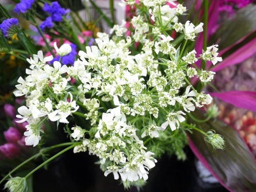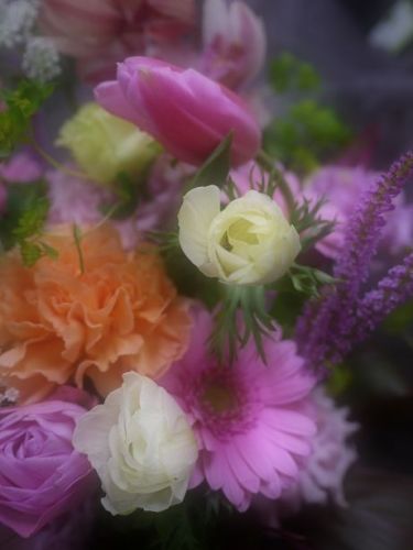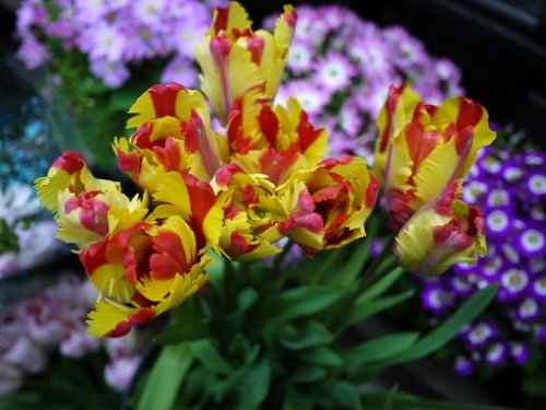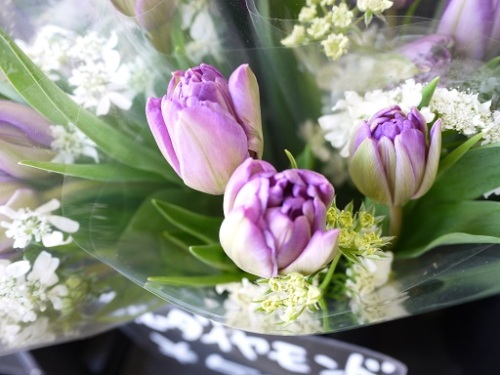 何でかしら。花満載。今日こそ仕入れを抑えようと思ったのに。フレミングパーロットがきれいに色づいてきました。 名前の通りセクシーになってきたチューリップ。「セクシーレディ」 アルストロメリア「ピンクサプライズ」。 アルストロメリア「ハルク」。 ポピー♪♪ ラナンキュラス。小ぶり。 そして今日も暖かい。。。 むしろ暑い。 節分なのに。 今日仏花がよく売れたのと節分は 何か関係があるんだろうか。 そろそろ桃の問い合わせが入ってきて、早いなぁと感じる今日この頃。 市場ではお彼岸の注文が始まって・・・は、早いな。もうお彼岸ですか。 先日、若い奥様がやってきて、「蝶ちょが蜜を吸う花ください・・・」と言われて。蝶ちょが蜜を吸う花!?み、蜜がたくさんある花って何かしら。時期が違うけど、リンドウは蜜だらけだけど。。。今の時期で蜜がたっぷりある花って。。。なんでなんでなんでなんで?と思って聞いたら「子供が芋虫を捕まえてきて。。。育ててたら蝶ちょになってて。。。砂糖水を置いてみたけど飲まなくて・・・花ならいいかしらと思ってきたんですけど、どれがいいのかわからなくて・・」ごめん私もわからない。わからないけど一緒に考える。で、マトリカリアっていかにも蝶ちょが好きそうな感じ、とふたりで意見合致して、奥様それを1本お買い求め。「でも蝶ちょって、花から花へ渡り歩く気がするんですよね、1本では難しいかも・・」と伝えて、「でもとりあえず・・」と買って行かれて。奥様またすぐにやってきました。今度は子供を連れて。まだ小さな女の子で。「やっぱりダメでした・・」と。で、今度は鉢のサイネリアを買って行かれて。子供が「コレ!」と選んだものを。「まだ外は寒いから、家の中で羽化した子だから、いきなり外に出したら死んでしまうと思って、何を与えたらいいのかわからないんですけど、とりあえずおうちの中で暖かくなるまで頑張ってもらおうかなって思ってるんです・・」なんてやさしい奥様。そして心やさしい女の子と。 もうその蝶ちょ、会ったことないけど無性に応援したくなる。蜜、蜜、、蜜、、、ねぇ、、、、 そして「ダメかもしれないけど、とりあえず蜜ついてるから・・」ってユリを1本プレゼントしました。「わぁ、いいんですか?ありがとうございます」「蝶ちょ、元気に育つといいですね」するとスタッフ、「アレですよ、カブトムシが食べるゼリー!」と。「夏じゃないけどどこで売ってるの?」と私。「ホームセンターとかにないですかね、アレも甘いからいいと思います」 季節はずれに羽化した1匹の蝶ちょのために、みんなであーだこーだと頭を抱えて。 よく子供って、どんでもないもの見つけて持って帰ってきたりする、私もそうだった。小さい頃、100匹以上のカタツムリを持ち帰って怒られたのをおぼえてる。でもその子供の好奇心に、真剣に向き合ってるその若いお母さんがステキだな、って思って、そしてその蝶ちょのために一所懸命になってるところ、ホント素敵だなって思って。なんとしてもその蝶ちょには頑張ってもらいたい。暖かくなるまでもう少し。なんとかおうちの中で生きてくれないかしら。そして暖かくなったら、子供とそのお母さんで、蝶を外に放してあげられるように。応援せずにはいられない。 私も蝶を育てたことがないから どうすればいいのかなんて全然わからないけれど、がんばれがんばれ と心の中で、応援歌を歌いたい心境。 春はもうすぐ。