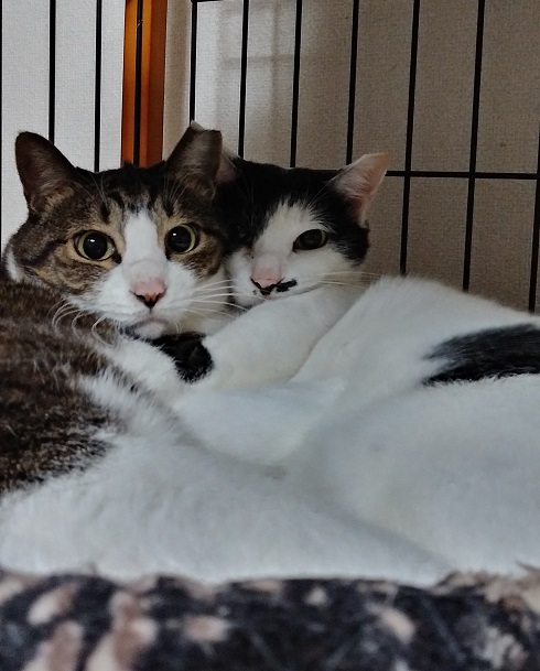 まーちゃんが少しずつ復活してきた。食欲も出てきて 歩く速さも以前に戻りつつある。あんなにふらふら、のろのろ歩いてはすぐ座り込んでいたのが、だいぶ立っていられるようになってきた。まだ 本調子ではないものの、少し、安心して見ていられるように。あの腎臓数値で、、すごいな。頑張って皮下補液してる甲斐がある。麦ちゃんもそうだけど、腎不全だからといって 諦めて放置してるより、少しでも楽になるようにほんの少し手助けするだけでネコ本人も 辛さが軽減してくれる。補液の量は 様子を見ながら微調整している。100cc入れたらちょっと多いし、60ccじゃちょっと少ないし、80ccくらいがベストなのかなと。それでも その都度 状態を見ながら今日は少し多めにとか、少なめにとか、私なりに考えて 調整して、、まーちゃん、まだおもちゃで遊ぶほどではないけど、おもちゃを振ると目で追うようにはなってきた。その調子その調子。無理せずのんびりいこう。愛ちゃんは最近急におとなしい。おとなしいというか、以前の愛ちゃんに戻ったのかな。あんなに怒ってばかりだったのが、この頃は静かにちんまりしていることが多い。顔を拭いても怒り狂うことはなくなったし、食後に暴れることもなくなった。あれ??と不安になったけど、思い出したのだ、愛ちゃんは元々、思いの外手がかかる子ではなかったことを。ご飯をたくさん食べて、トイレも自分でちゃんとして、みんなが遊んでいる音に耳を傾けて、その音で愛ちゃんも楽しそうにして。時々自分でも 見えないなにかを捕まえようと、えいっ!と手を伸ばしてみたり。そんな、以前の愛くるしい愛ちゃんに戻ってきた。やはり、季節の変わり目の気圧とかが、脳に影響を及ぼしていたのかな。特に春は、発情期の名残の影響とかあるかもしれない。避妊手術をしたのも遅かったし、発情期という本能が残る子もいるし。去年の今頃は、避妊手術していなかったから、発情期と発作の関係があからさまだった。頻繁に発作を起こして、それが、発情期と関係あるのでは、と気づいた。多分そう。最近は発作を起こすこともないけど、あの怒り方はもしかしたら、そういうのがあったのかもしれない。手術は、麻酔の影響がかなりリスキーだし、それによっておそらく、おそらくね、体の麻痺の進行が少しずつ影響出てる気がするけど手術をしなかったリスクと、したリスク、愛ちゃんの場合は命に関わることだから、やっぱり私は、手術してよかった、と思ってる。発情期って、本能だけど、避妊去勢手術は ほとんどの場合 した方がいいと私は思ってるし実際そうだと思う。生殖器の病気の予防とか排除もそうだけど、何よりネコ自身のストレスは相当なものだから。なにはともあれ。うわ、もう夜が明けてしまう、なにはともあれ 寝る。ぐんない。