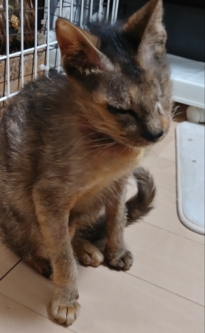 昨夜の愛ちゃんゴキゲンさんなのだ愛ちゃんが自分からケージを出てくるときはゴキゲンなしるし。遊びたいのだ。遊ぶといってもなかなか難しいんだけど愛ちゃん的には広いところでくるくるしたい。いろんなにおいをくんくん嗅ぎたい。誰かの食べ残しがあったら食べちゃいたい。首の下はまだ炎症があって、自分で激しく引っかくからなかなか治らないんだけど。きれいに拭こうとすると余計引っかくから、なかなかきれいにできずしかし塗り薬は塗ってるからひどくはなってない。首周りに毛が生えそろったら、もっとかわいくなるのにねぇ。ずいぶんおとなしくなった愛ちゃんだけど、トイレの砂は 相変わらずみんな掻き出しちゃう。昨夜、ゴキゲンな愛ちゃんはくるくる回りながら なっちゃんのところに近寄ってしまって。なっちゃんは床に座っていたんだけどちょっと愛ちゃん、近寄りすぎだな、と手を伸ばした瞬間、なっちゃんが、「これ以上近寄るな」ってふいに軽く愛ちゃんを叩いた。あ!!!って思った。以前もそれで、なっちゃんの爪が愛ちゃんの目に刺さり 眼球摘出するまでになってしまったのだし。なっちゃんは悪気はない。挙動不審な動きをする愛ちゃんが近寄ってきたので警告しただけだ。しかししかし昨夜、びっくりした愛ちゃんは口を開けて後ろに倒れた。その瞬間私が愛ちゃんの背中を支えたけれど、床に、何か水しぶきが飛んだ。ぎょっとした。愛ちゃんの右目は、以前から何か中身が出てきちゃってる。それに触れたみたいだ、やばい。そのあと愛ちゃんは怒ってうずくまり顔を上げてくれず。ヒヤヒヤしたけど今朝はいつもの愛ちゃんだった。寿命縮まるー、、、とりあえず 愛ちゃんだって 遊びたい。だけども 他のことは遊べない。なかなか難しいね・・・今日もお疲れちゃん。