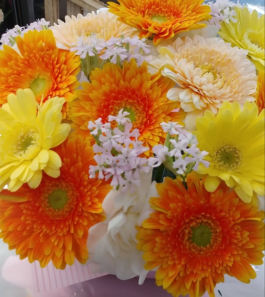 今日はオレンジの命日。オレンジは、昔昔遠い昔、一緒に暮らしていたネコ。わずか4歳の若さで逝ってしまった、ロン毛のかわいい女の子だった。かわいいオレンジ色のガーベラが入ったから、今日はこのガーベラをお供えしよう。まだちょっと気が早いひまわり。ガーベラたくさん入荷したので、色別のかわいいミニブーケに。カーネーションがいい季節。やはり母の日は4月にするべきだよね。閉店間際にちょっとバタバタ。さっき下書きしておいた日記がなぜか消えてしまって簡単更新で。では。