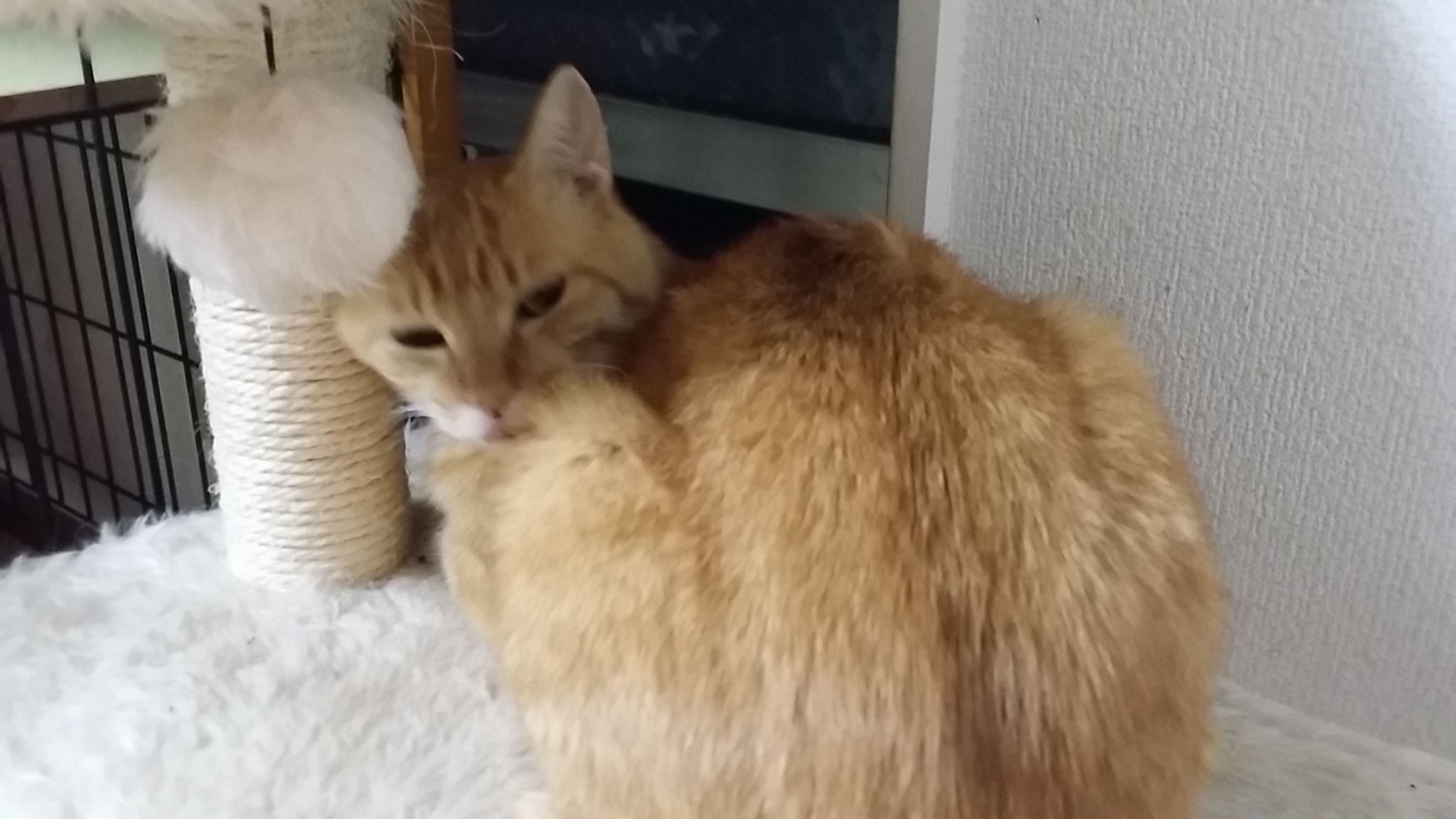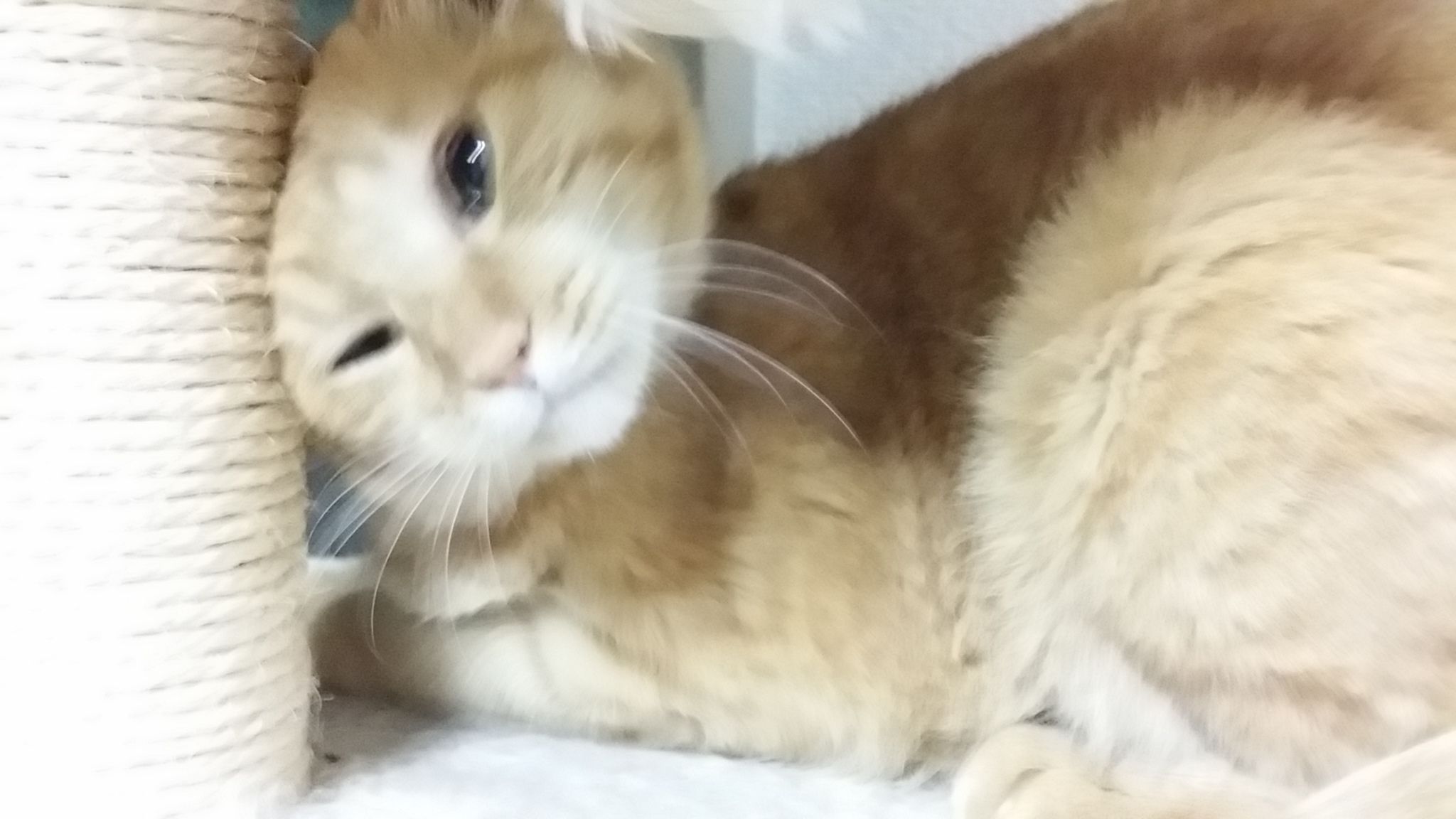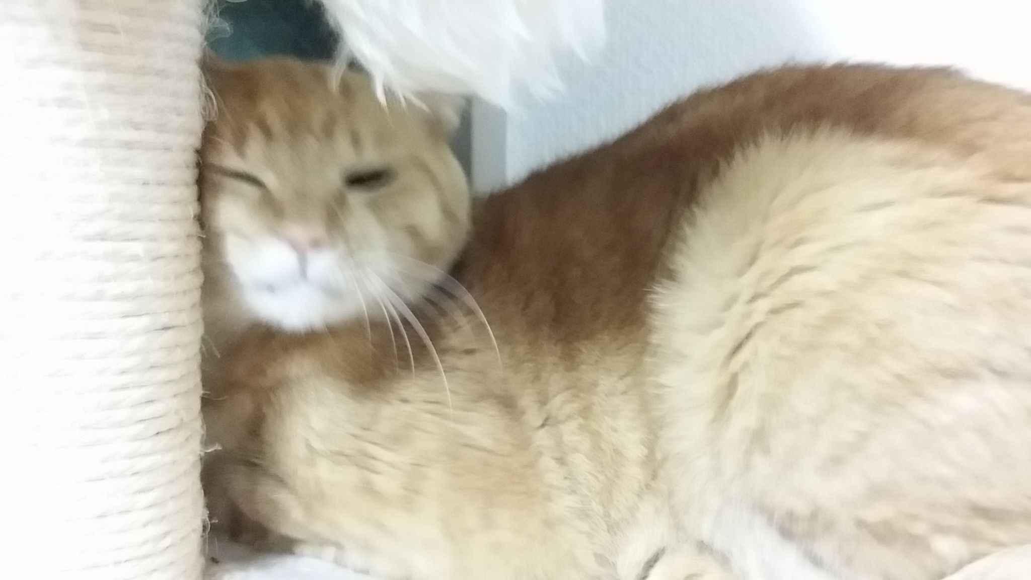 私をちらちら見ながらキャットタワーの柱にすりすり。。