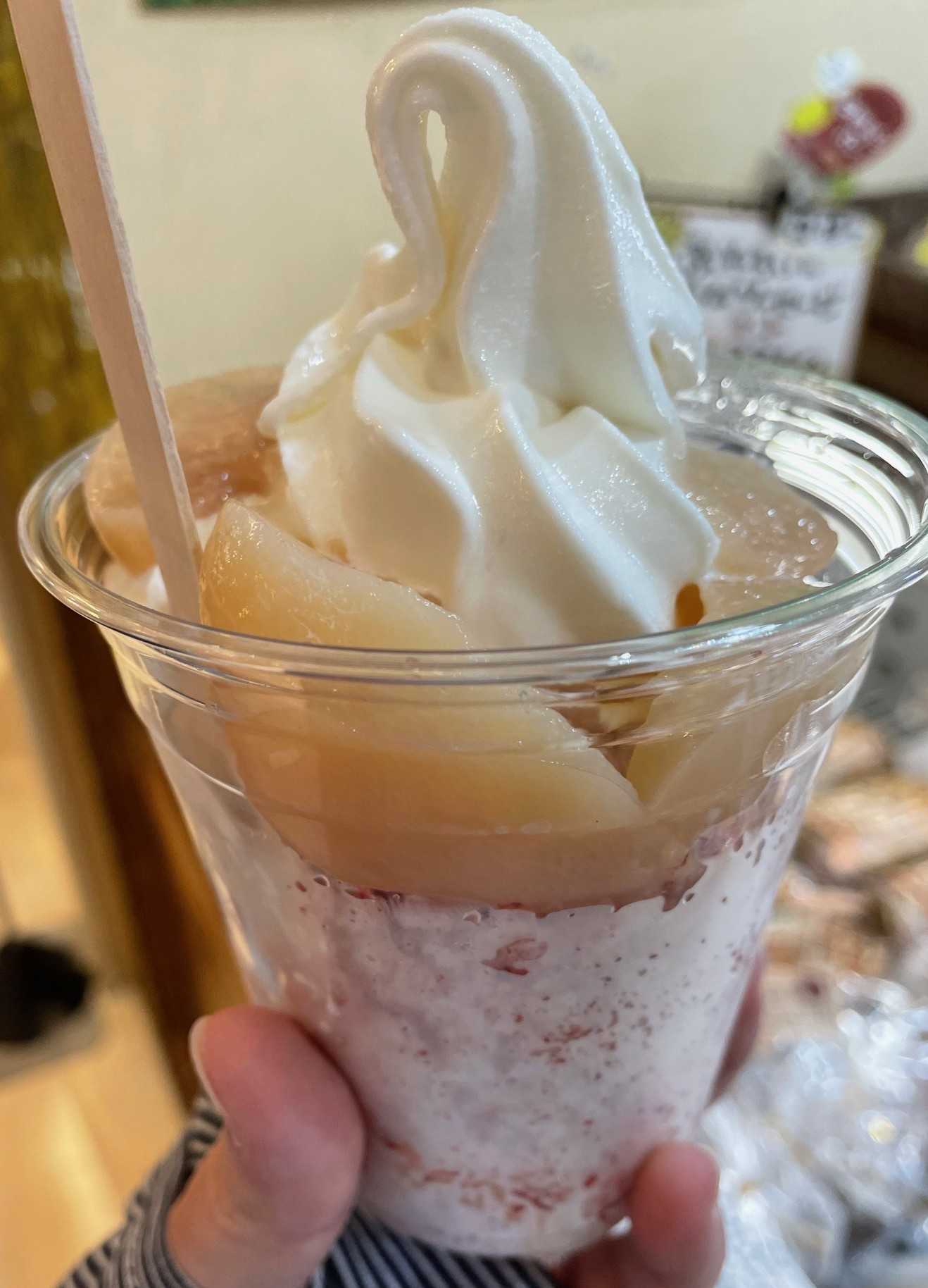 この日は ソフト→赤福氷、からの、またソフト、です。プラカップの下半分は凍ったイチゴの細かく砕いたやつ。880円と考えるとちょっと高いかな…イチゴそんなにいらんからもうちょっとソフトの量をたっぷりめにしてほしいかなと。せっかく桃ソフトなのに下のほうイチゴだらけなのでソフトの味も桃の味も消えてなくなる。暑い日だったのでソフトもかき氷もめっちゃおいしかった。