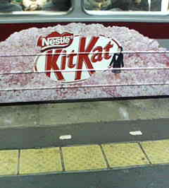 食品アンケート仕事に行って来ました。試食の量が凄かったので昼食抜いていって良かったです。でも最後にAとBの意見が半分に分かれたので微妙な商品だった。帰りにデパ地下で普段食べれない物を買い込んでギャラを殆ど使ってしまいましたが、今晩の夕食は豪華なので満足しています。帰りに乗車した電車がkitkat専用電車で写真の様に桜が綺麗だったのですが社内は受験生の為のきっと勝つ!の桜ポスターが満開で現役大学生・受験生をもつ母親・高校教師等が書いた応援メッセージと写真が貼られていました。社内の満開の桜を見ながら、ふと!自分の受験時代を思い出しましたね~♪頑張れ!受験生!